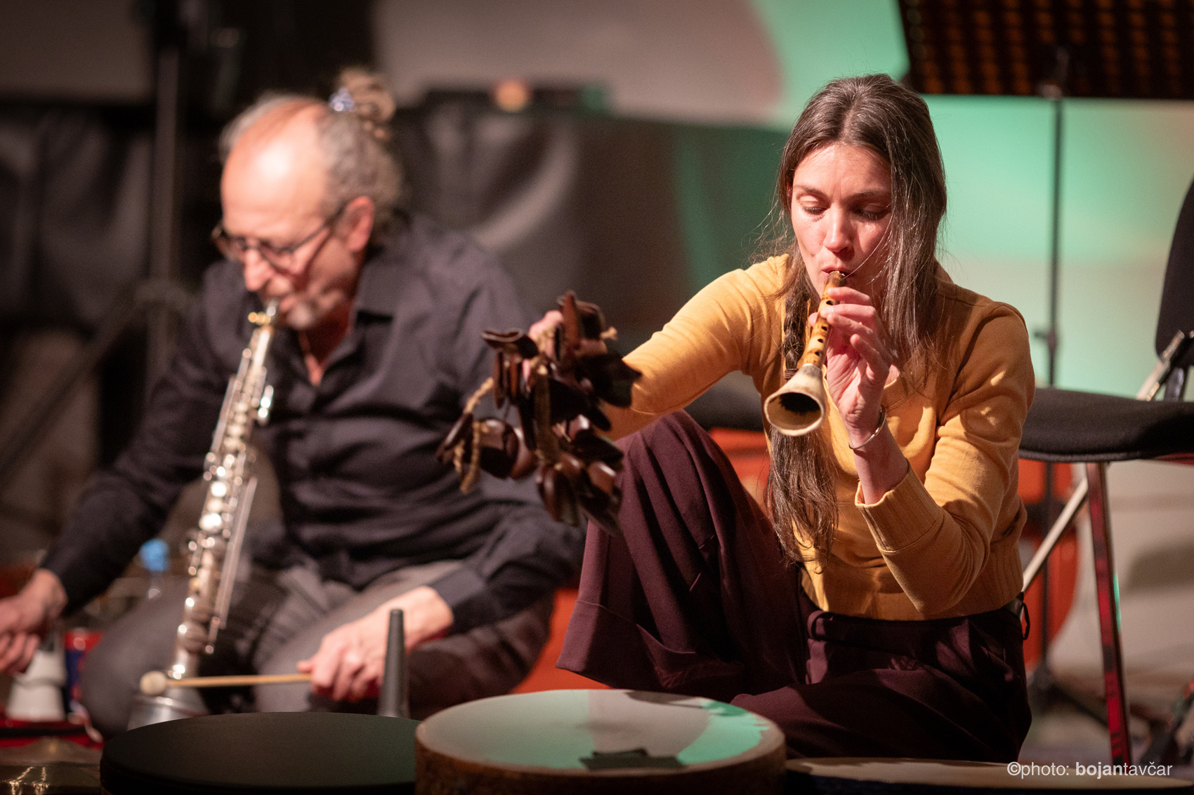Ana Kravanja (violin, viola, ribab, qeychak, balafon, frame drums, flutes)